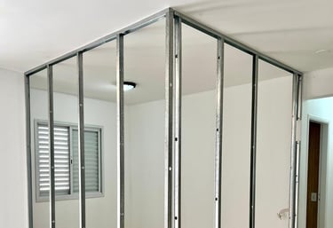 Soluções em drywall para escritórios e comércios, visando funcionalidade e estética, contribuindo para ambientes de trabalho mais agradáveis e produtivos, sempre com qualidade e excelência no serviço.